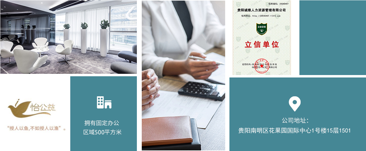 貴陽誠維人力資源管理有限公司始創(chuàng)于2005年,公司總部位于中國西南地區(qū)筑城貴陽。貴州省首批取得《人力資源服務(wù)許可證》和《勞務(wù)派遣許可證》的專業(yè)服務(wù)公司。 公司業(yè)務(wù)涵蓋國內(nèi)勞務(wù)派遣、人力資源外包、人事代理、招聘、管理咨詢與培訓(xùn)等服務(wù)。 自成立16余年以來,長期致力于服務(wù)民眾、服務(wù)社會、服務(wù)市場,連續(xù)6年被評為“人力資源誠信服務(wù)機構(gòu)”。 2019年8月成功當(dāng)選“貴州省人力資源服務(wù)行業(yè)協(xié)會”副會長單位。 2019年3月成功當(dāng)選“貴陽市人力資源服務(wù)行業(yè)協(xié)會”會長單位。 2020年-2021年連續(xù)兩年入選